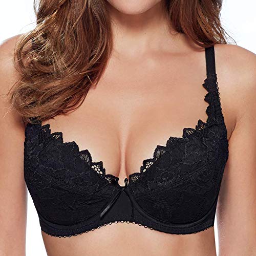 A luxurious lace piece, the Fiore Balconette Bra by Lepel has padded half cups and underwiring for support. The front of the bra is adorned with scalloped lace and floral embroidery whilst the sides boast beautiful, dainty basque style ribbons.Wired