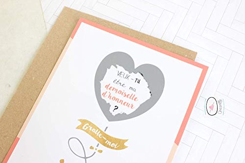 Surprise et joli souvenir garantis avec cette carte à gratter pour demander à demoiselles d’honneur d’être à vos cotés le jour de votre mariage. Papier de haute qualité Rigidité 300g/m² Recto finition brillante Verso type carte postale avec mon logo – papier couché Format 10×15 cms Carte non personnalisable à l’unité mais faisable à partir de 25 unités. Illustration par Oricamille – Camille Braun Reproduction interdite A très vite Camille