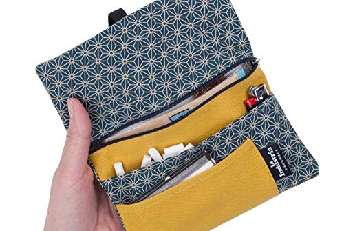 En tissu résistant et disponibles avec divers motifs à la mode, les blagues à tabac de La Industria protègent avec style tout ce dont vous avez besoin pour rouler vos cigarettes. Elles comprennent une grande poche zippée pour le paquet de tabac, ainsi que 3 petites poches pour les accessoires, comme les filtres, les feuilles et votre briquet. Ainsi, tout est réuni, mais organisé séparément. De plus, une robuste bande élastique sert à fermer la pochette à tabac, afin de vous assurer de ne rien perdre en route.