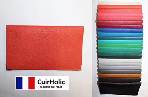 Porte chéquier, protège chéquier ou étui pour chéquier “porte-feuille” c’est-à-dire chéquier avec talon en haut et à ouverture verticale. Fabriqué en cuir de chèvre de tanneries françaises. Cuir de grande qualité pour ses propriétés de robustesse et de longévité. Dimension 19 cm x 11 cm Fabriqué dans notre atelier du Marais à Paris.